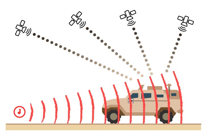 - Jamming. The attacker uses strong radio signals on the same frequencies as GNSS signals, creating interference and preventing the receiver from receiving data from the satellites, Figure 10 [16]. Unlike spoofing, jamming does not attempt to change the location or time; it simply prevents the receiver from receiving signals and, therefore, determining coordinates. This can lead to a complete failure of the navigation system.