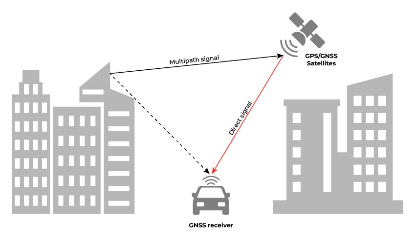 Since the reflected signal travels a longer path, it arrives with a delay compared to the direct signal. This can mislead the receiver and lead to errors in determining the distance and position.