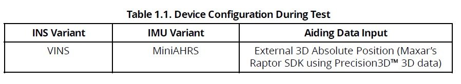 The following report shall analyze the aerial GNSS-denied navigation performance of the IL-VINS (Visual Inertial Navigation System) with Maxar’s Raptor vision-based positioning capability. Raptor determines absolute visual-based positioning from real-time imagery by referencing onboard, 3m accurate, satellite-based Precision3D three-dimensional maps. This study will exhibit the sensor fusion performance in GNSS-denied conditions of Inertial Labs’ INS with Maxar’s Raptor software development kit (SDK). Raptor can provide absolute 3D positioning aiding data estimates to the INS’s extended Kalman filter for seamlessly providing highly accurate PNT information to end-user applications. The following paper will depict results from two fixed-wing vehicle scenarios operating at low above ground level (AGL) with variation in day/night conditions while using a Cessna 172-S test aircraft. Table 1.1 below depicts the IMU and aiding data input sources used for the VINS platform during the tests.