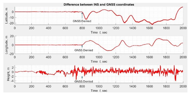 Note: The INS estimated linear velocities are aligned with the GNSS estimated velocities. Figure 3.4 below presents the linear velocity estimation error plot to provide better observability of the velocity estimation performance during the flight.
