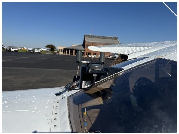A Cessna-172 Skyhawk aircraft was used as the primary aerial test vehicle for the flight test within this report. Attached are some figures that showcase how the GNSS antennas were mounted on the aircraft, Pitot-static tube mounting, and setup of the VINS.