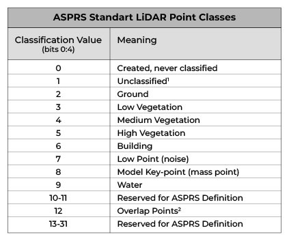 Figure 9. Table of values and corresponding classes, according to the LAS 1.2 specification.