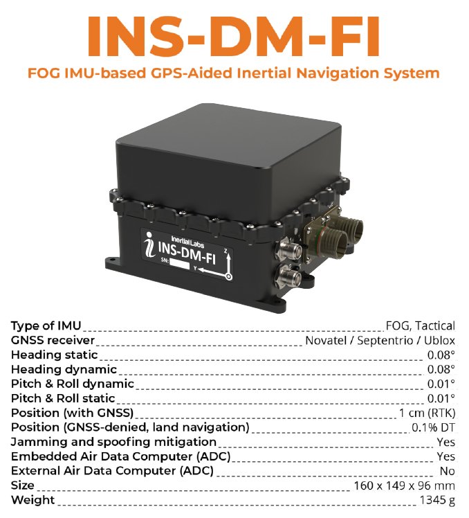 [6] “FOG IMU-BASED AHRS and INERTIAL NAVIGATION SYSTEM INS-DM-FI” https://inertiallabs.com/wp-content/uploads/2024/10/INS-DM-FI_Datasheet_rev1.6_Sept30_2024.pdf