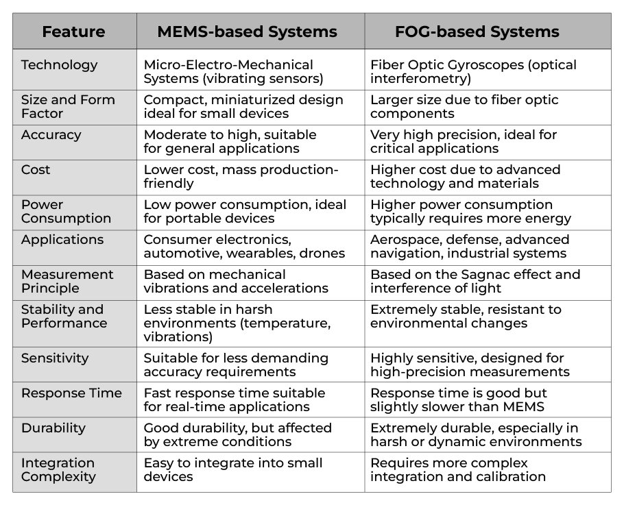 Choosing the right inertial system can significantly impact your project’s success. Our article breaks down the critical distinctions between MEMS-based and FOG-based technologies, helping you make an informed decision. We explore how MEMS (Micro-Electro-Mechanical Systems) offer compact, cost-effective, and energy-efficient solutions ideal for consumer electronics, drones, and automotive applications. In contrast, Fiber Optic Gyroscopes (FOG) provide unparalleled precision and stability, making them essential for aerospace, defense, and high-stakes navigation. Whether you need a lightweight, budget-friendly system or the most accurate and stable technology on the market, understanding these differences will guide your choice. Read on to discover which inertial system best suits your needs and why investing in the right technology is crucial for your application.