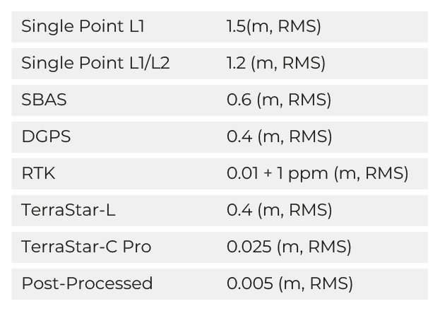 Specifications of Position for Recommended NovAtel GNSS Receiver*