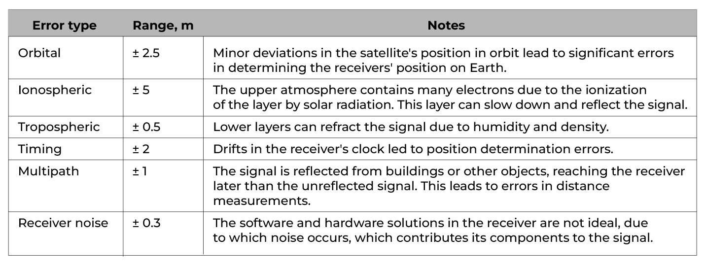- GPS data often suffers from errors caused by atmospheric conditions, satellite geometry, and multipath effects. Standard GPS (single frequency) typically provides an accuracy range of 5–10 meters. The influence of factors on positioning accuracy is given in Table 1.